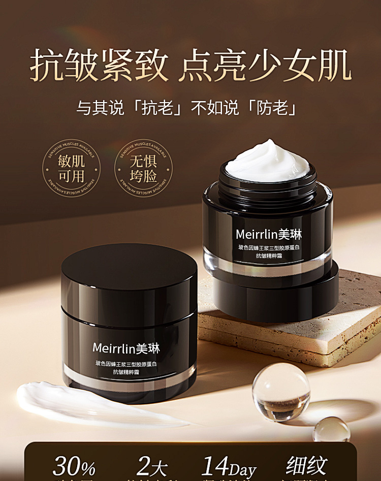 抬头纹、皮肤粗糙、苹果肌下垂⬇️ 时光驻颜 不是时光太无情😫 是你没找对抗衰方式✅美琳生物蜂王浆三型胶原蛋白抗皱精粹霜 抬头纹、皮肤粗糙、苹果肌下垂⬇️ 时光驻颜 不是时光太无情😫是你没找对抗衰方式✅