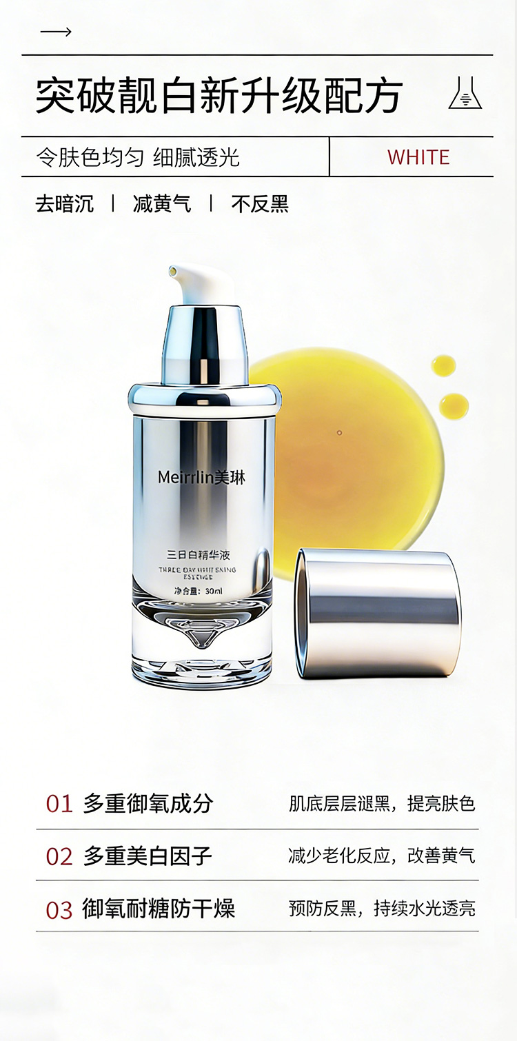 专研多维美白通路,抑黑、淡斑、提亮、抗氧化同步进行,重塑肌肤透亮光泽,打造由内而外的净透白肌